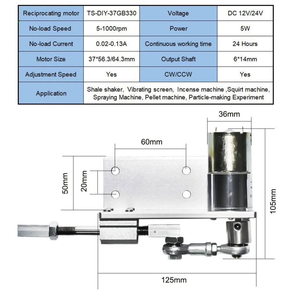 Addition Information of 330S 5mm Stroke DIY Design Reciprocating Cycle Linear Actuator with DC Gear Motor 12V 24V Adjustabl