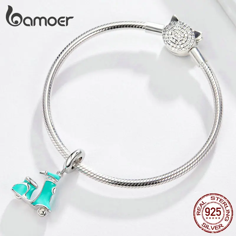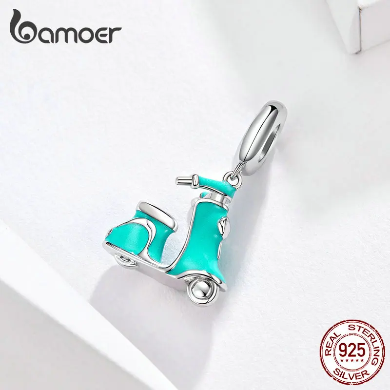 BAMOER Enamel Bike Charm for Bracelet 925 Sterling Silver Electric Bicycles Pendant Fit Women Neckl