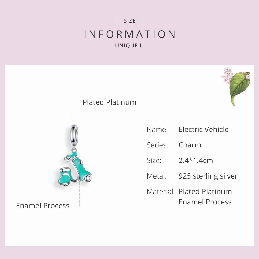 Addition Information of BAMOER Enamel Bike Charm for Bracelet 925 Sterling Silver Electric Bicycles Pendant Fit Women Neckl