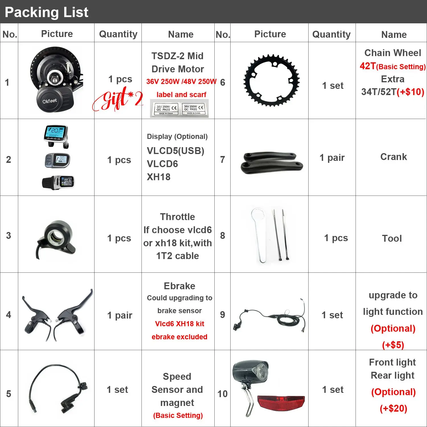 Addition Information of TSDZ2 Midmotor 36V 48V 250W 350W 500W Electric Bicycle Torque Sensor Mid Drive Motor Kit with LCD D