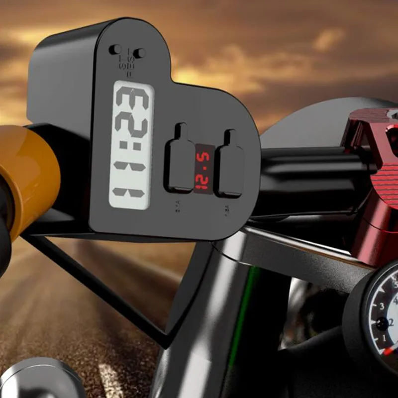 Universal USB Motorcycle Waterproof Charger Motorbike Adapter Electric Bicycle Digital Voltmeter Ga