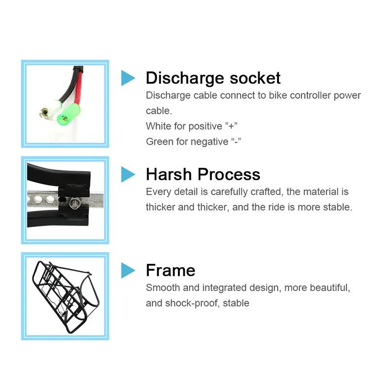 Addition Information of EU No Tax Electric Bicycle eBike 48V 52V 250w-1000w 48V 21AH Rear Rack Battery Bafang BBS01 BBS02 D